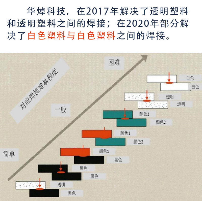 適用材料:ABS、AS、PP、PE、PA、PC、PVC、PMMA、PS、PBT、POM、COC等熱塑性塑料及各種改性工程塑料(較適合兩種透紅光材料之間的焊接);
